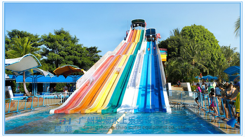 1. 水上樂園設(shè)備彩虹滑梯主體采用高性能的玻璃鋼復(fù)合材料,手工工藝糊制,具有非常強(qiáng)的韌性和硬度,安全,耐用。